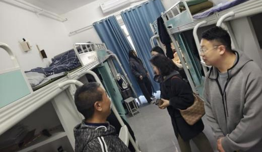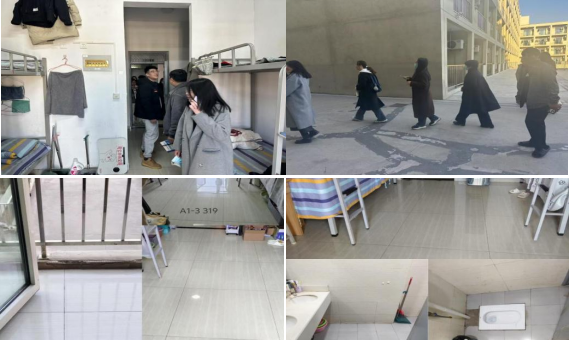 五、3月18日,学管主任陈晓慧和张磊主任带领23、24级班主任检查学生宿舍,重点检查以往表现较差宿舍,当场指出问题,督促学生进行整改,保证宿舍卫生达标。