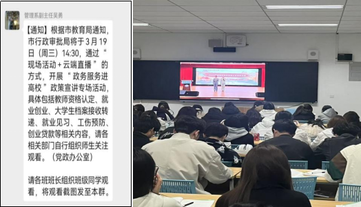 五、3月19日下午管理组织学生收看“政务服务进高校”政策宣讲专场活动。