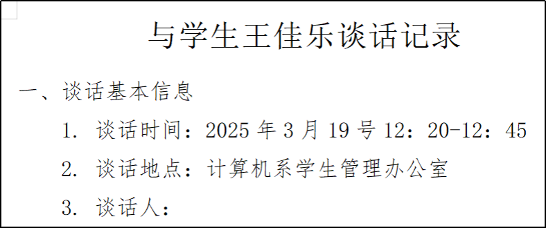 九、与学生谈心谈话,解决问题,形成谈话记录。