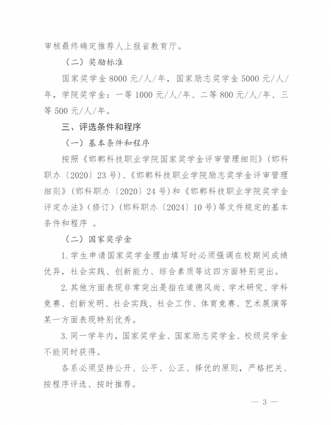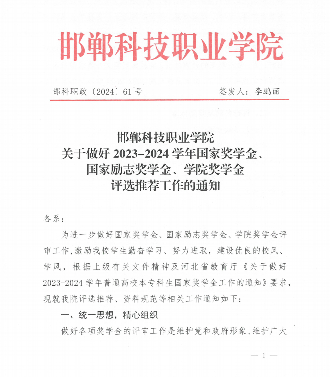 邯郸科技职业学院 开”奖“了--新学年奖学金评选通知